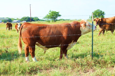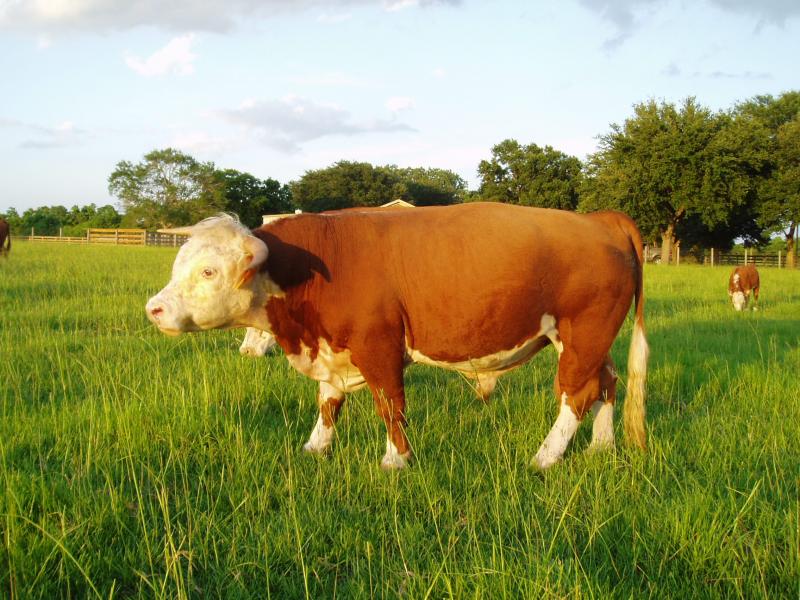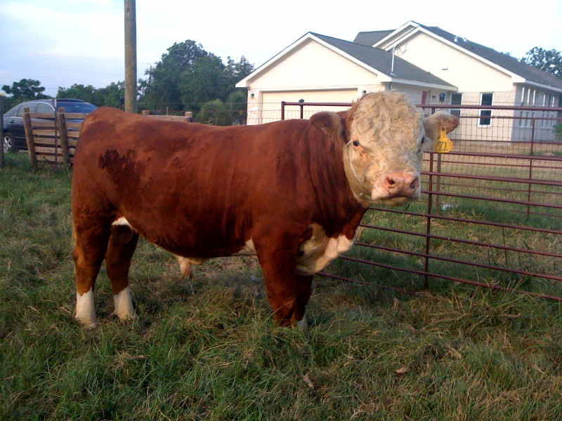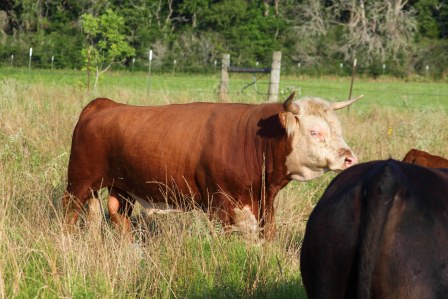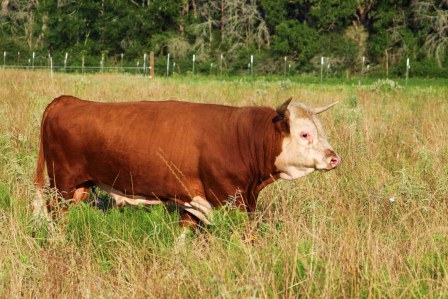 This is our main herd Miniature Hereford bull, LS Rusty Gold 468. He threw very nice, thick, stout and small calves. He is estimated at 3 odds (000).